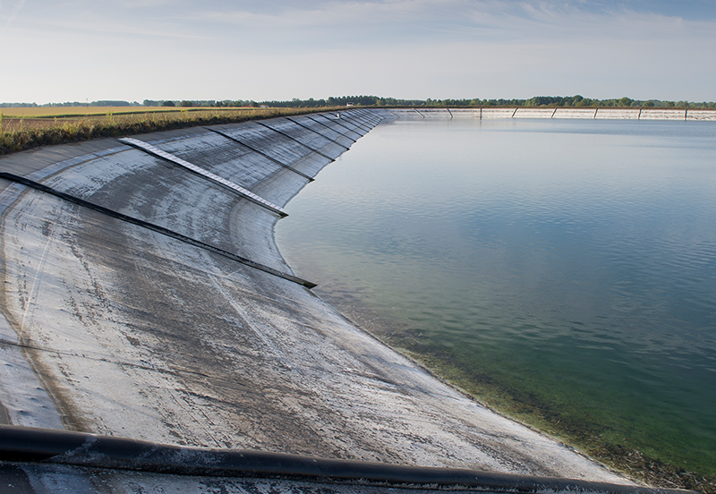 dispositif de remplissage par forage, raccordement des préleveurs par réseau, étanchéité des remblais par géomembrane :